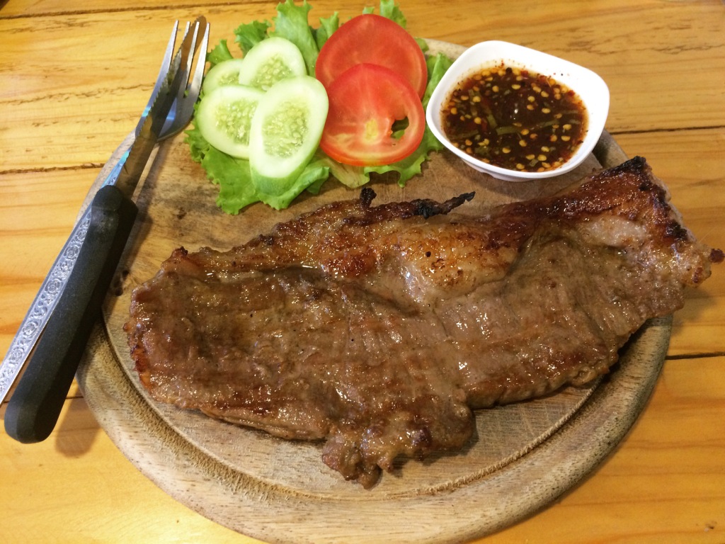 เมนูถัดมา สเต็กเนื้อ ของคุณสามี เนื้อชิ้นใหญ่มากกกกกกกก คุ้มราคา เนื้อฉ่ำ ซอสแจ่วเหมือนกันค่ะ