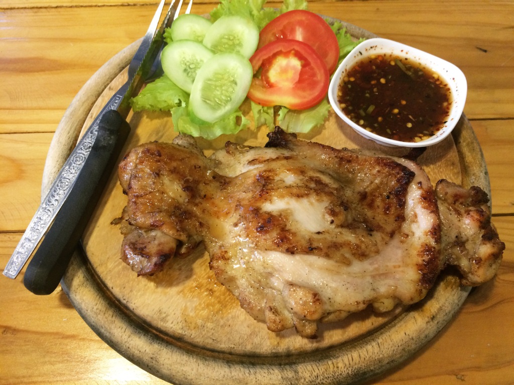 ถัดมา สเต็กไก่ของเราเอง ไก่นุ่ม ฉ่ำ ละมุนมากค่ะ มากับแจ่วเหมือนกัน