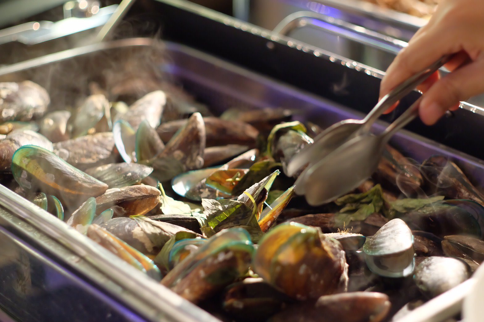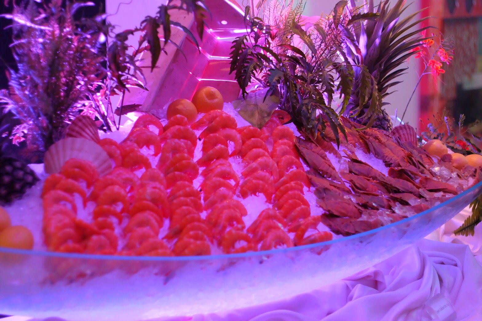 อาหารทะเลบนน้ำเเข็ง เช่น หอยนางรม หอยเเมงภู่ กุ้ง น้ำจิ้มซีฟู้ดหรือยำ ไม่จี๊ดจ๊าด เผ็ดปะเก็นเเตกนะครับ