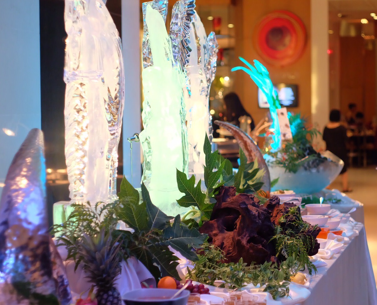 ขึ้นมาเเรกสุดเจอก้อนน้ำเเข็งเเกะสลัก นึกว่าเดินขึ้นผิดมาเจองานเเต่งใคร