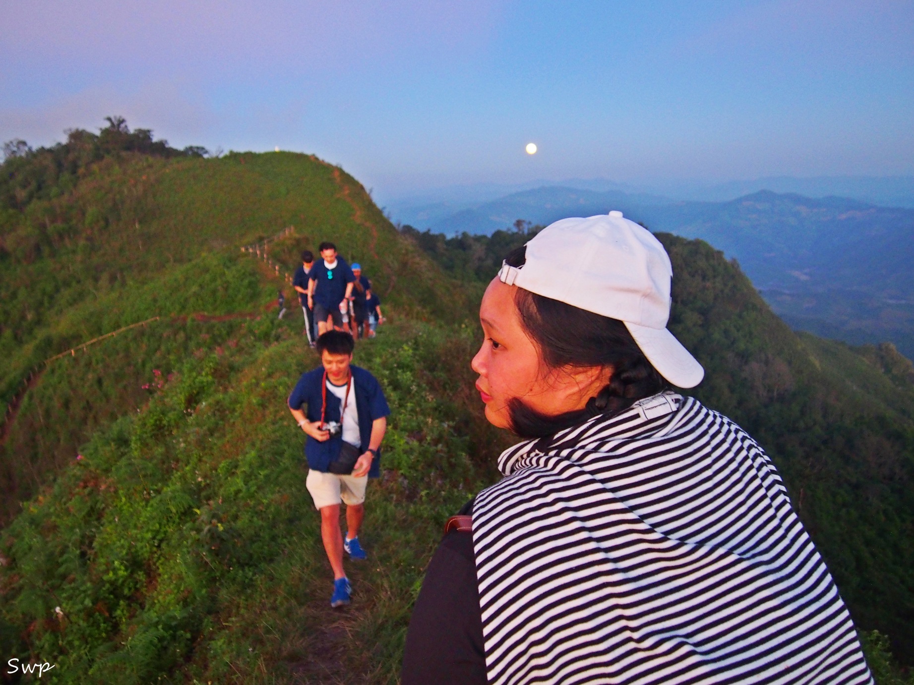 พอคนเริ่มมาเยอะขึ้น เราก็ต้องทะยอยลง เพราะข้างบนนั้นพื้นที่ไม่ได้กว้างมากนัก เราต้องแบ่งให้คนที่พึ่งมาถึงได้เชยชมบ้าง พระจันทร์ก็ขึ้นละด้วยแหละ ฮ่าๆๆๆ