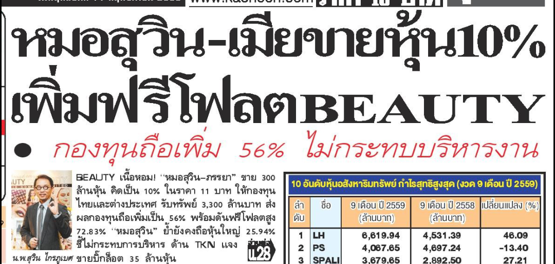 BEAUTY นี่หมอกับภรรยาขายคนละ300ล้านหุ้น?