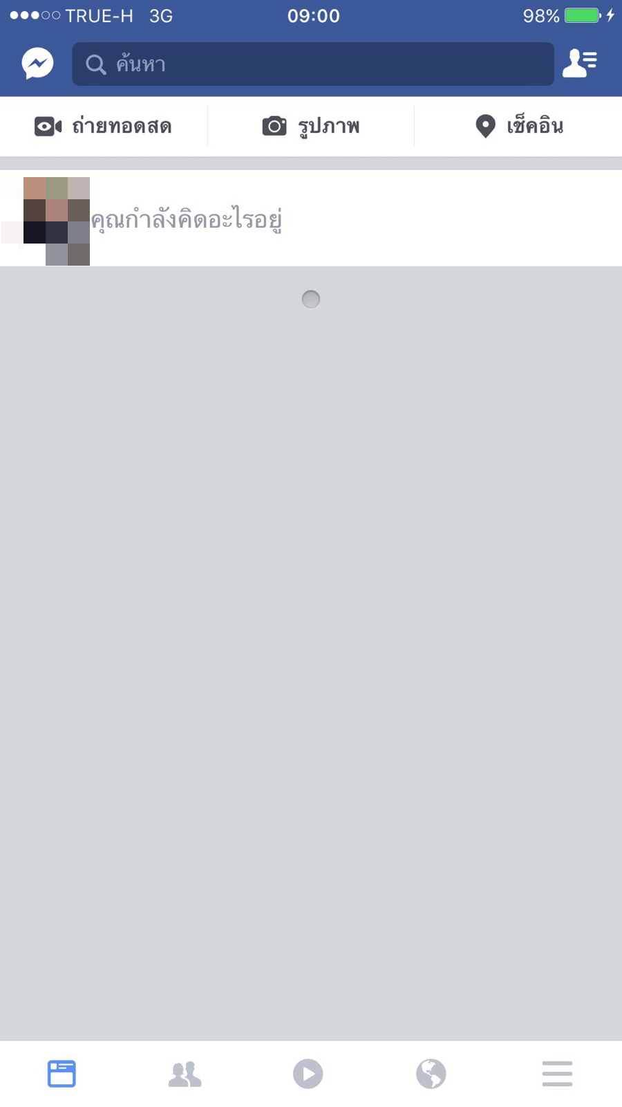 ปัจจุบัน จขกท. ใช้ iphone6s plus แล้วเมื่อวานมือถือก็ดับไปดื้อๆเหมือนแบตหมด ผมเลยกด home button + power bottom จนเครื่องติดขึ้นมา แต่พอจะเข้าใช้งาน facebook ก็ปรากฏหน้าจอสีขาวดังภาพข้างล่าง