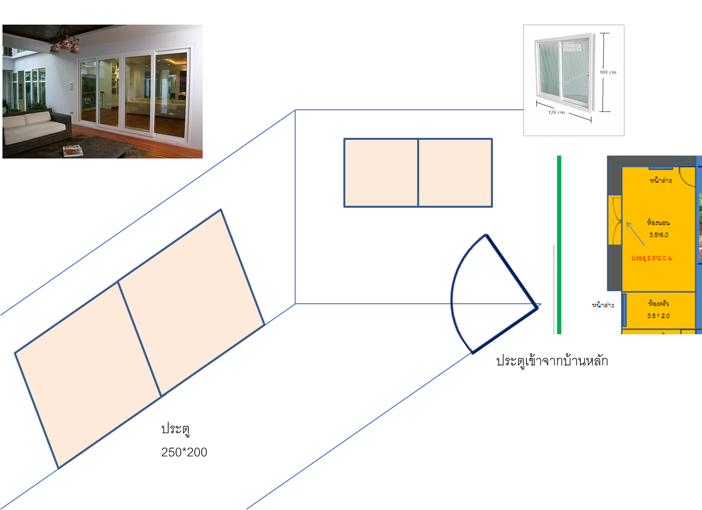 คือเราต้องการรีโนเวทบ้าน โดยทุบกำแพงและรื้อประตูเก่าออก แล้วติดเป็นประตูกระจกบานเลื่อน + เหล็กดัดพร้อมมุ้งลวดค่ะ พื้นที่เดิมกว้าง 3 เมตร สูง 3 เมตรกว่า เราต้องการประตูขนาด เกือบ 3 เมตร สูง