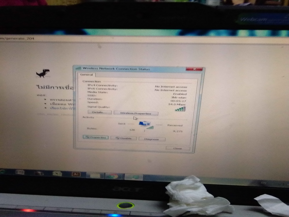 ตามหัวข้อเลยค่ะ ทำไมถึงใช้ไม่ได้ ทั้งที่มีสัญญาณ password ถูก แต่ขึ้นว่าไม่มี การเชื่อมต่อ อินเตอร์ เน็ต ลองเข้าไปรีมูฟ เชื่อมต่อใหม่แล้วไม่ได้ ทั้งๆที่ ถ้ากระจาย Hot Spot จากมือถือมาเชื่อม