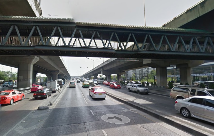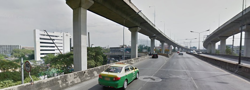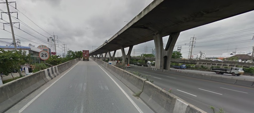 ฝั่งไปถนนเทพารักษ์ ปัจจุบันมีป้ายติดบริเวณที่วงกลมไว้ว่าห้ามขึ้น วันดีคืนดีฝั่งตรงข้ามมีด่าน