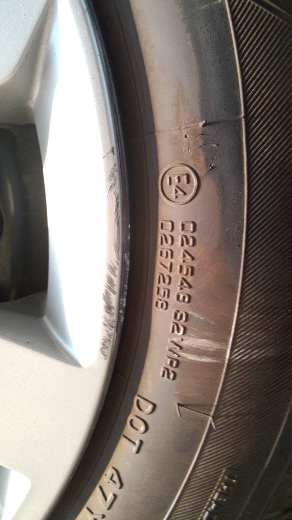 พอดีขับรถแล้วไปเบียดฟุตบาท เกิดรอยดังในภาพ รบกวนขอคำแนะนำหน่อยครับ 1.ที่แม็กซ์มีรอยครูดถลอก แก้ไขยังไงได้ครับ เห็นแล้วขัดใจเล็กๆ 2.ยางมีรอยฉีกที่ขอบแบบในภาพ เป็นอะไรรุนแรงไหมครับ จำต้องเปลี่ยน