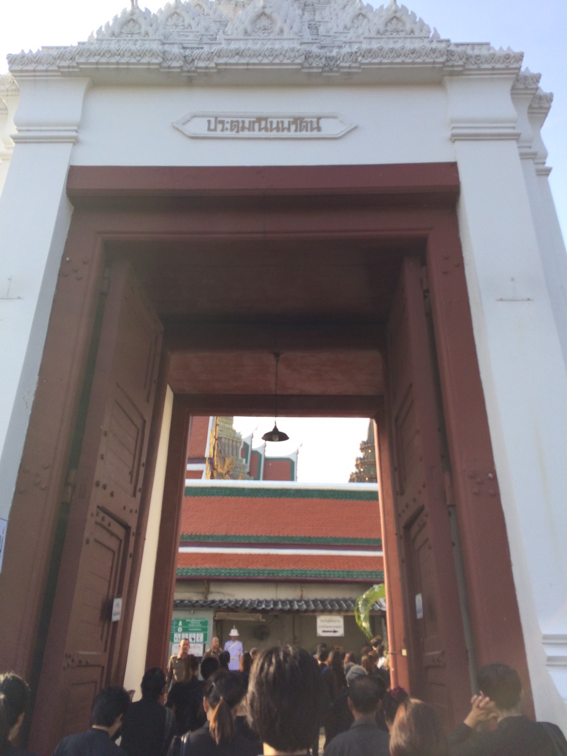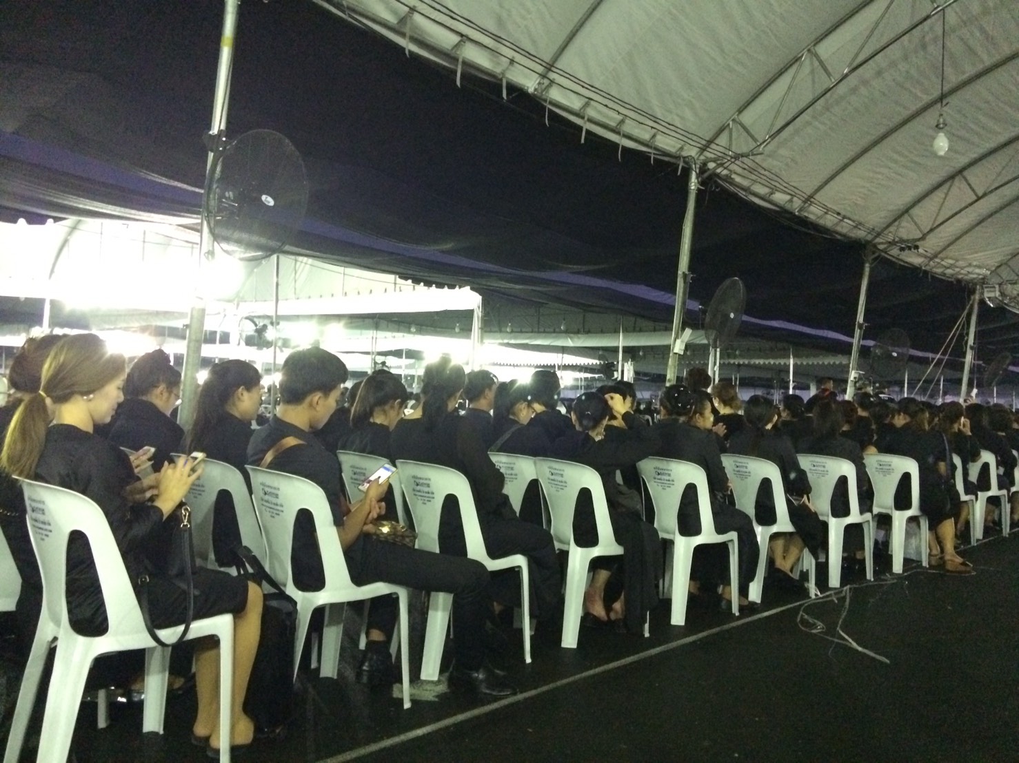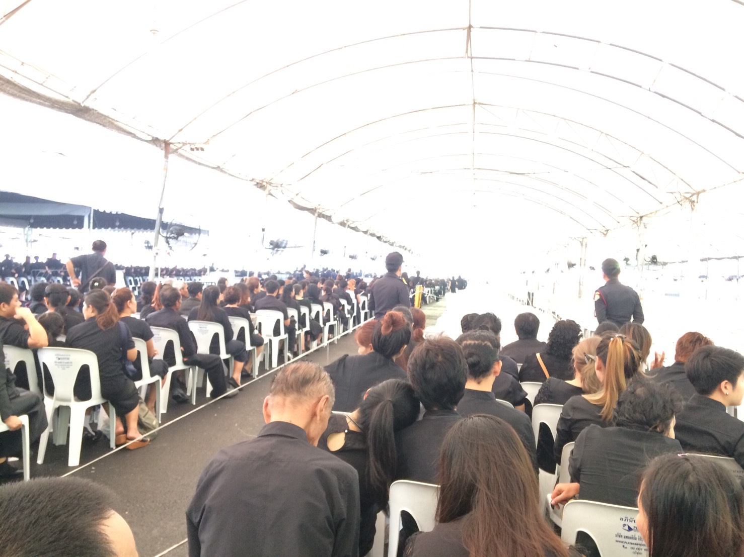 การเข้ากราบสักการะพระบรมศพพระบาทสมเด็จพระปรมินทรมหาภูมิพลอดุลเดช เมื่อวันอาทิตย์ที่ผ่านมา (20 พฤศจิกายน 2559) ตั้งใจไปกราบสักการะพระบรมศพ ในพระที่นั่งดุสิตมหาปราสาท โดยไปถึงบริเวณหน้าโรงแรมรัตนโกสินทร์ เวลา 02.30 น. ซึ่งขณะนั้น มีประชาชนจำนวนมาก เดินเต็มพื้นที่ไปหมด เพื่อตั้งแถวและจับจองพื้นที่ ตั้งแต่ริมคลองหลอด ยาวไปถึงหลังศาลฎีกา โดยปูพื้นและนั่งเรียงกันเป็นแถวตอน 4 แถว บนฟุตบาท และในส่วนของพื้นที่ รอบสนามหลวงก็เต็มไปด้วยประชาชน ที่เตรียมรอเข้าพื้นที่ด้านใน เวลาประมาณตี 3 ประชาชนเริ่มเพิ่มจำนวนมากขึ้น จนล้นลงไปที่พื้นถนน หน้าวัดบูรณศิริ พอใกล้เวลา ตี 4 ประตูสแกน วัตถุอันตราย อาวุธ ก็ได้เปิดทำการ ประชาชน เริ่มเข้าแถว ตามคิวที่นั่งรอกันไว้ จนเวลา 04.30 น. เราและเพื่อนก็ได้ผ่านประตูตรวจ จากนั้น จึงวิ่งเข้าไปในพื้นที่ท้องสนามหลวง แบบไม่รู้ว่าจะไปตรงไหน ต่างคนต่างวิ่งตามกันไป เพราะมาจากหลายประตู เมื่อเข้าสู่พื้นที่ ท้องสนามหลวง ก็จะเดินตามกันเข้าไป ตามเต๊นท์ที่กำหนดไว้ จากนั้นก็จะเข้าสู่พื้นที่ด้านใน เจ้าหน้าที่ทหาร และเจ้าหน้าที่ กรุงเทพมหานคร ก็จะแปรแถว เป็นแถวตอนเรียง 4 เพื่อเดินต่อไป ในระหว่างทาง ก็จะมีจิตอาสา น้ำกาแฟ น้ำดื่ม ไก่ทอด ข้าวเหนียว ข้าวต้มมัด ยาหอม ยาลม ยาดม มาแจก แต่เพื่อความปลอดภัย ในการเข้าห้องน้ำ ไม่ควรกินอะไรมาก มันจะลำบากตอนไปเข้าห้องน้ำ จากนั้นก็จะไปได้นั่งเก้าอี้ ซึ่งเราและเพื่อนได้ แถวที่ 5 จำนวนคนในแต่ละแถว มองอย่างต่ำน่าจะประมาณ 400 - 500 คน ซึ่งช่วงนี้ จะเป็นเวลาที่ง่วงมาก (ช่วงฟ้าสาง) จากนั้น เจ้าหน้าที่ทหาร ก็จะเริ่มทยอยพาเดิน ไปยังจุดรอคอย หน้าวัดมหาธาตุยุวราชรังสฤษดิ์ เตรียมเข้าสู่ พระบรมมหาราชวัง เราถึงหน้าประตูวิเศษไชยศรี เวลา 08.00 น. ได้เวลาเคารพเพลงชาติ จากนั้นเจ้าหน้าที่ จะพาเดินไปที่ประตู มณีนพรัตน์ เข้าสู่ คดระเบียงวัดพระศรีรัตนศาสดาราม (วัดพระแก้ว) ในช่วงนี้ จะได้ชื่นชมกับความงดงามของสถาปัตยกรรมไทย และภาพจิตรกรรมรามเกียรติ์ จากนั้นจะเกินออกสู่พื้นที่ พระบรมมหาราชวัง ผ่าน พระที่นั่งอมรินทรวินิจฉัย พระที่นั่งจักรีมหาปราสาท และเตรียมตัวเข้าสู่บริเวณพระที่นั่งดุสิตมหาปราสาท เมื่อเข้าเขตพื้นที่ เจ้าหน้าที่สำนักพระราชวัง จะแจกถุงสีดำ เพื่อใส่รองเท้า และเตรียมแปรแถวเพื่อขึ้นสู่ด้านบน ในช่วงนี้ เพื่อเป็นการถวายความเคารพ โปรดงดใช้โทรศัพท์หรือกล้อง ทำการบันทึกภาพ จากนั้นเจ้าหน้าที่ จะแบ่งออกเป็น 2 กลุ่ม ๆละ 2 แถว เพื่อขึ้นสู่ด้านบนพระที่นั่งดุสิตมหาปร
