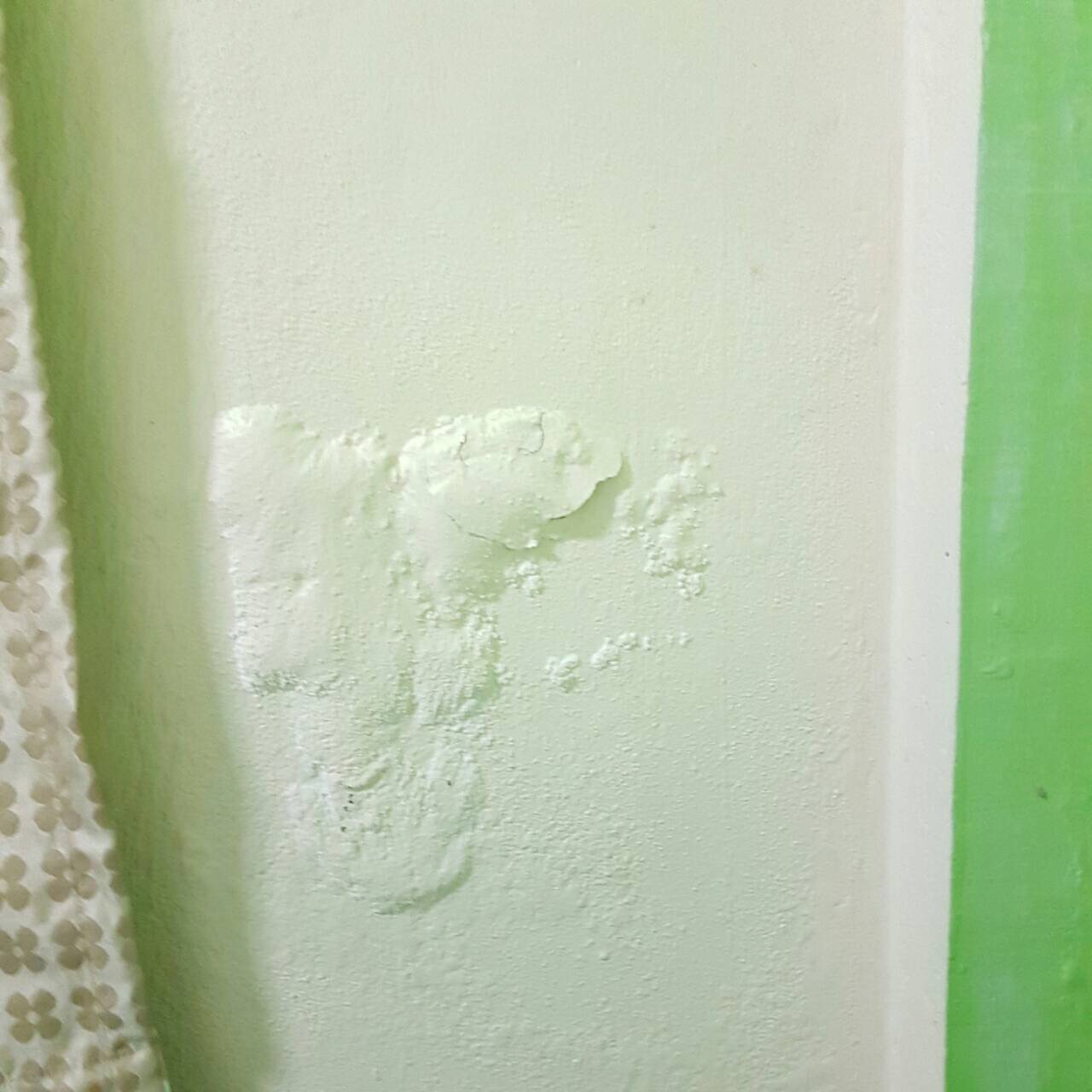 ปรากฏว่าพื้นผิวผนังมันขรุขระ เป็นปื้นๆ เหมือนผิวแพ้อะไรซักอย่าง เห็นแล้วขนลุก บรื๋อมาก