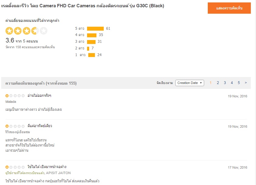 จขกท. ทำการส่ง รีวิวกลับไป โดยให้ 1 ดาว และรายงานจุดบกพร่องตามความจริง