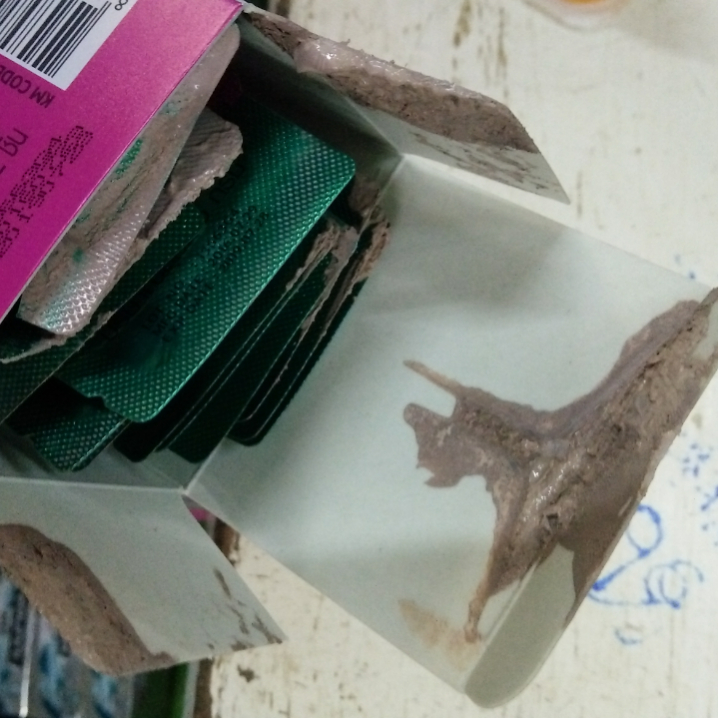 กลับมาบ้านมาเปิดดูแทบช็อค!!!!! มีซองครีมถูกฉีกออกแล้วก็เปลื้อนกล่องหมดเลยคะ ตอนแรกดูนึกว่าแตก แต่นี้รอยฉีกชัดๆคะ เจอ 2 ซองด้วย