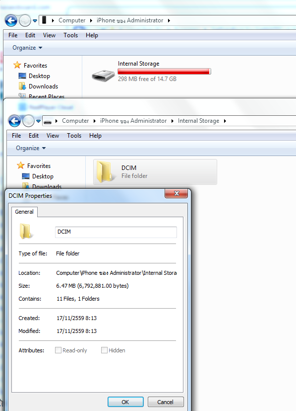 สวัสดีคครับ ผมจะสอบถามการนำ รูปจากไอโฟน ลงเครื่องคอม เครื่องผมมันฟ้องว่าเต็ม (ผมใช้ไอโฟน 5) เลยจะเอาพวกรูปภาพลงที่คอมพิวเตอรื พอเสียบสาย USB มองเห็นไอโฟนเรียบร้อยขึ้นมาสีแดงเลย แต่พอคลิกเข้าไปในโพเดอรืปรากฎว่า มีรูปอยู่แค่ 10 ภาพ ตามภาพด้านล่างเลยครับ
