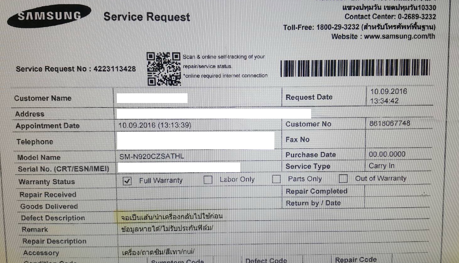 จึงได้ทำการนำไปเข้าศูนย์ Samsung ที่ Siam square one ตามภาพ (มือถือยังอยู่ในประกัน)
