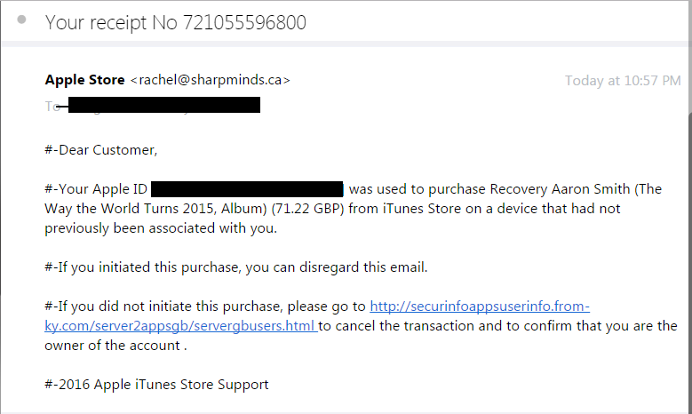 เตือนภัย Phishing อีเมล์จาก iTune Store + ขอวิธีแก้เผ็ดพวกนี้ด้วยครับ