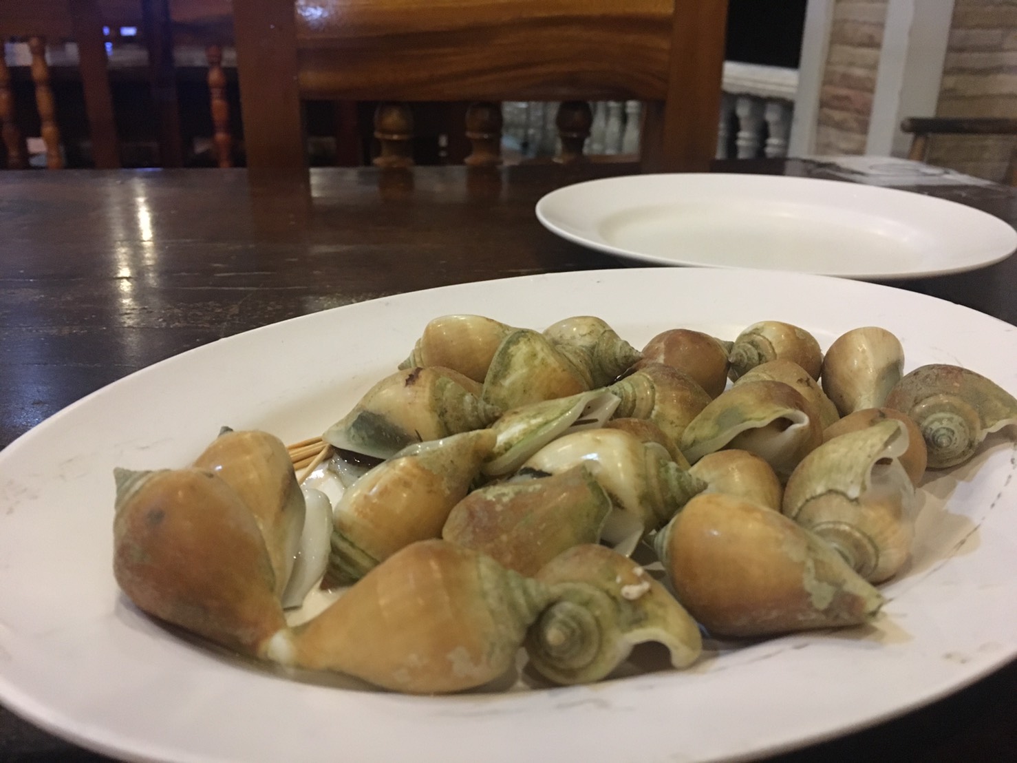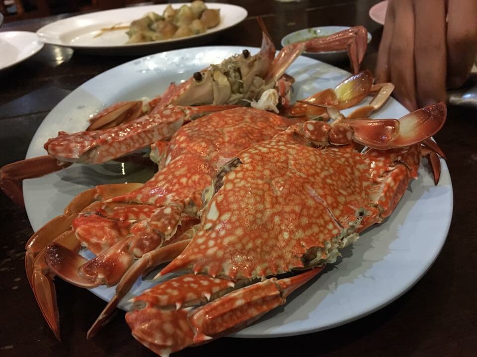 20.30 แต่งตัวนั่งรถไปร้านวังทรายซีฟู้ด เค้าว่าอาหารกู๊ด และราคาโอเค สั่งปูนึ่ง หอยชักตีนลวก แกงส้มปลากระพง กินซักพัก มองรอบๆ เอ้า โต๊ะสุดท้ายแล้วนี่หว่า พนักงานนั่งมองแบบว่า ลุกสิๆ ตูจะกลับแล้ว