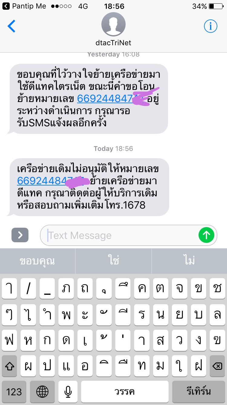 วันนี้ทางDtac แจ้งมาว่า. AIS ไม่ให้ย้ายเพราะติดสัญญา