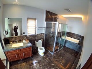 ห้องน้ำมีฮีทเตอร์คล้ายเตาปิ้งหมูย่างอยู่ด้านบนด้วย เวลาอาบน้ำหรือหลังอาบก็ไม่ได้รู้สึกหนาวเลย อิอิ