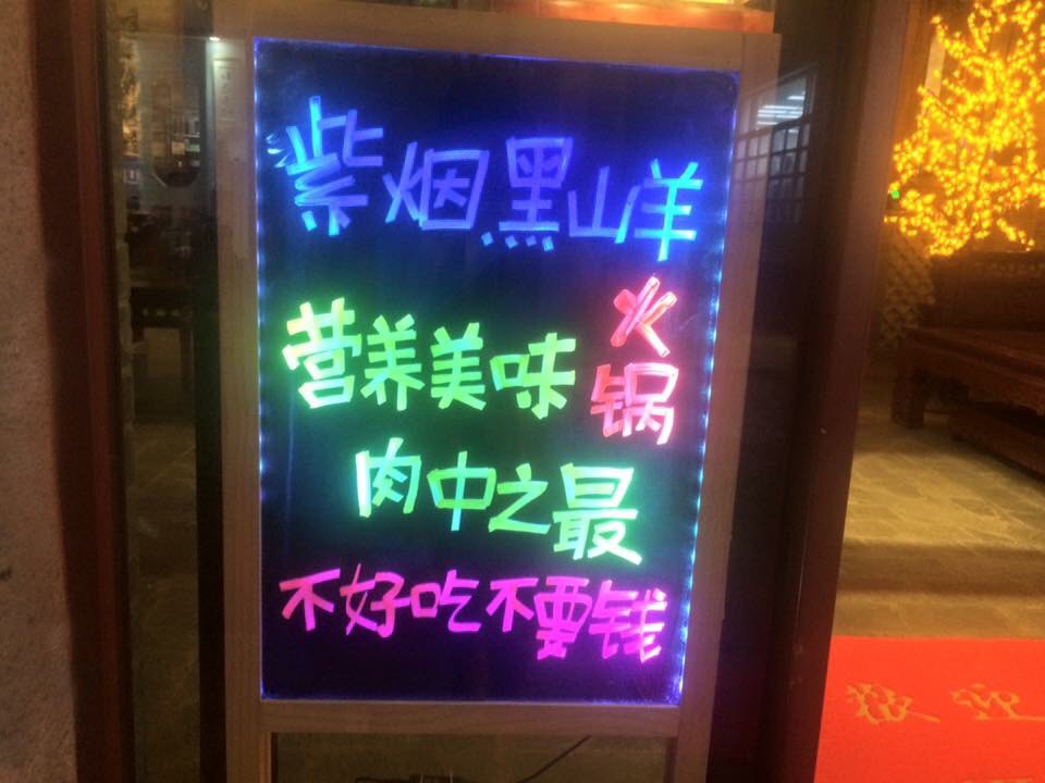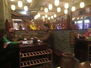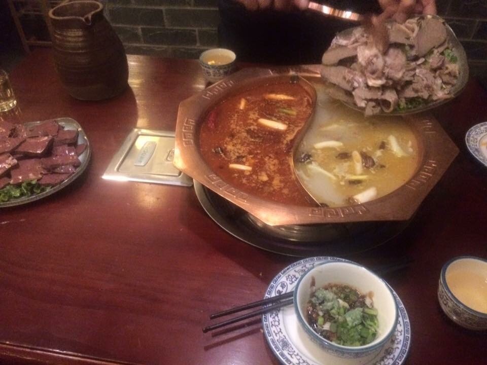 เมื่อจัดแจงสัมภาระเข้าที่ก็ได้เวลาออกหากิน เดินวนหาอาหารอยู่นานเดินไปหลงไปคล้ายๆเขาวงกต ก็โผล่มาเจอคล้ายๆสุกี้บ้านเรา ที่นี่เค้าเรียก火锅บนป้ายเขียนไว้ว่า ไม่อร่อยไม่ต้องจ่ายตัง เอาวะลองสักตั้ง เข้าไปนั่งก็จะมีใบสั่งของให้เลือก เราก็จิ้มๆมั่วๆ อ่านออกบ้างมั่วบ้าง รสชาติพอใช้ได้นะ แต่น้ำจิ้มที่ให้ผสมเองนี่ดิมีให้ผสมอยุ่เกือบยี่สิบออย่างเลย เราก็ผสมมั่วๆ ปรากฏว่ากินไปกินมาลิ้นชา ฮ่าๆๆๆๆ ที่จริงไม่อร่อยเอามากๆเลย รึว่าลิ้นเราไม่ถึงก็รู้