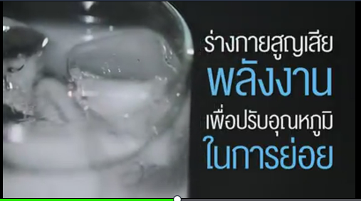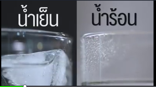 2:39 / 4:25 คลิปกล่าวประมาณว่า อุณหภูมิของน้ำมีผลต่อประโยชน์จากน้ำ -- ให้ดื่มน้ำที่ ไม่ร้อน ไม่เย็น เพราะดีกว่า.