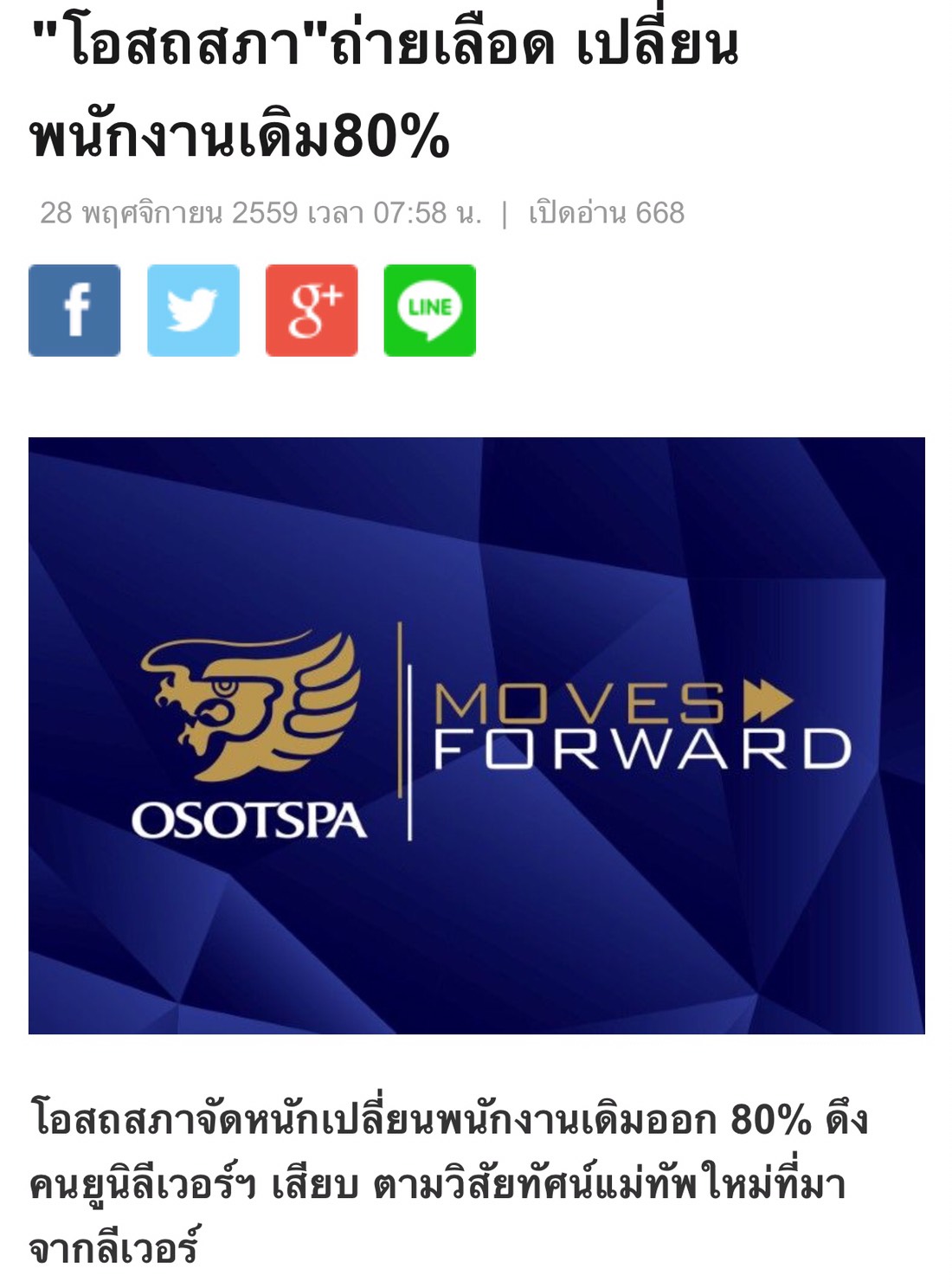 ข่าว " โอสภสภา ถ่ายเลือด เปลี่ยนพนักงานเดิม 80% "