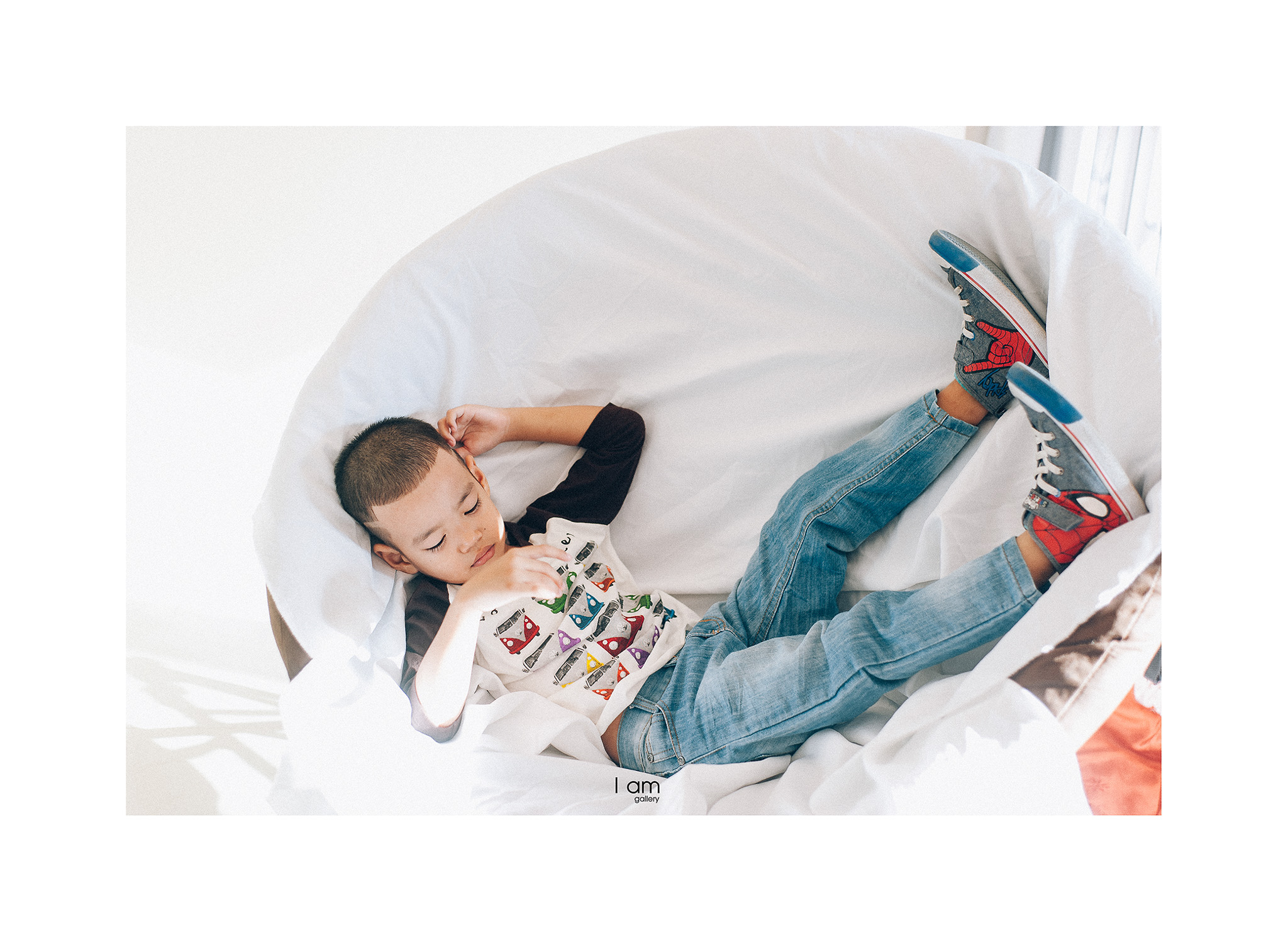 แสงธรรมชาติที่ผ่านหน้าต่างห้อง ปูผ้าขาว แล้วเราก็มีความสุขกับการถ่ายรูปลูก