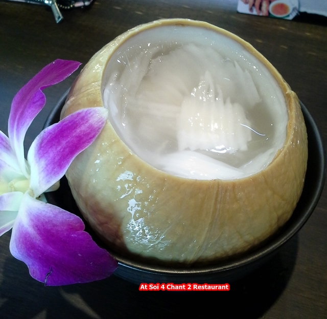 และตบท้ายด้วยของหวานที่ทางร้านแนะนำ กับวุ้นมะพร้าวอ่อน ที่มีกลิ่นหอมละมุนจากน้ำมะพร้าวหอม และรสชาติที่ไม่หวานจนเกินไป