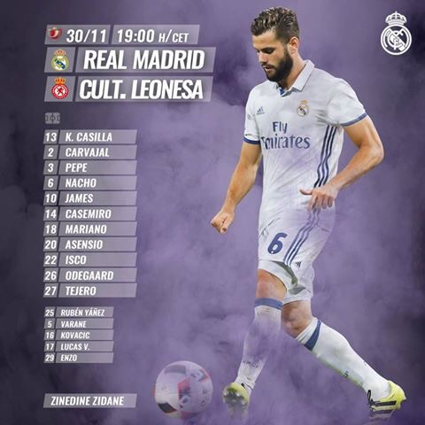 รายชื่อ 11ตัวจริง +สำรอง วันนี้ค่ะ (ซีดานพักผู้เล่นตัวหลักอย่างสามประสานBBC แล้วส่งเด็กลง นานๆทีจะได้เห็นฮาเมสกะอิสโก้ลงสนามพร้อมกัน อิอิ)