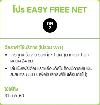โปร easy free net รุ่นหลังๆ นอกจากต้องเติมเงิน 50บ./ด. เพื่อเอาเน็ต 64K ล่าสุดถูกปรับราคาค่าโทรขึ้นอีก
