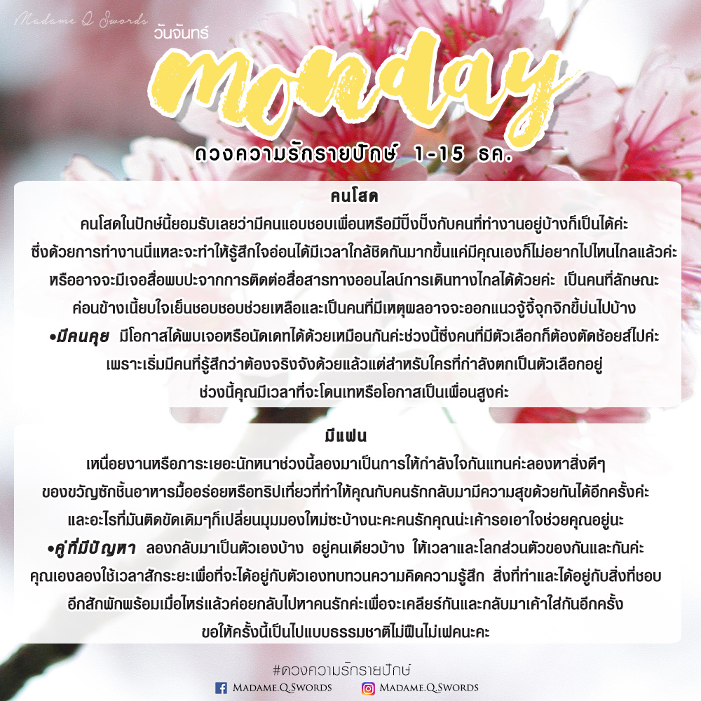 ดวงความรักรายปักษ์ 1-15 ธค. ช่วงทดลองเขียนค่ะ
