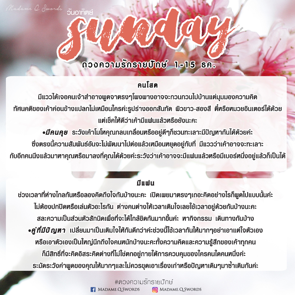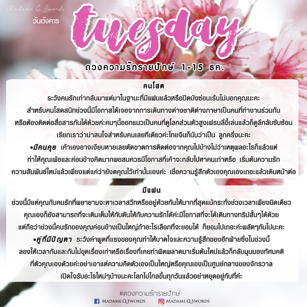 ดวงความรักรายปักษ์ 1-15 ธค.