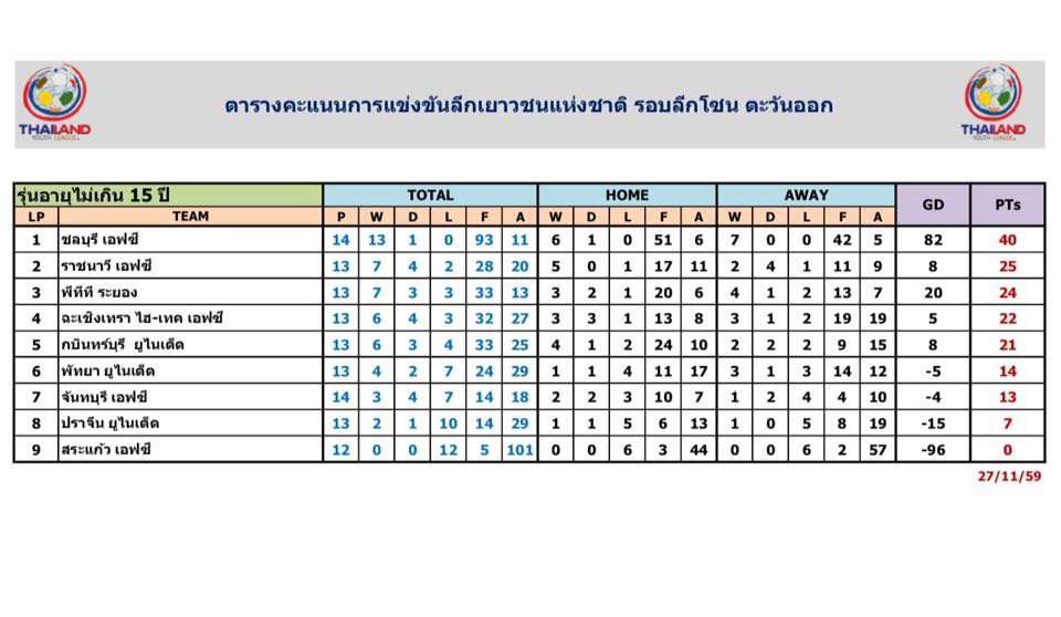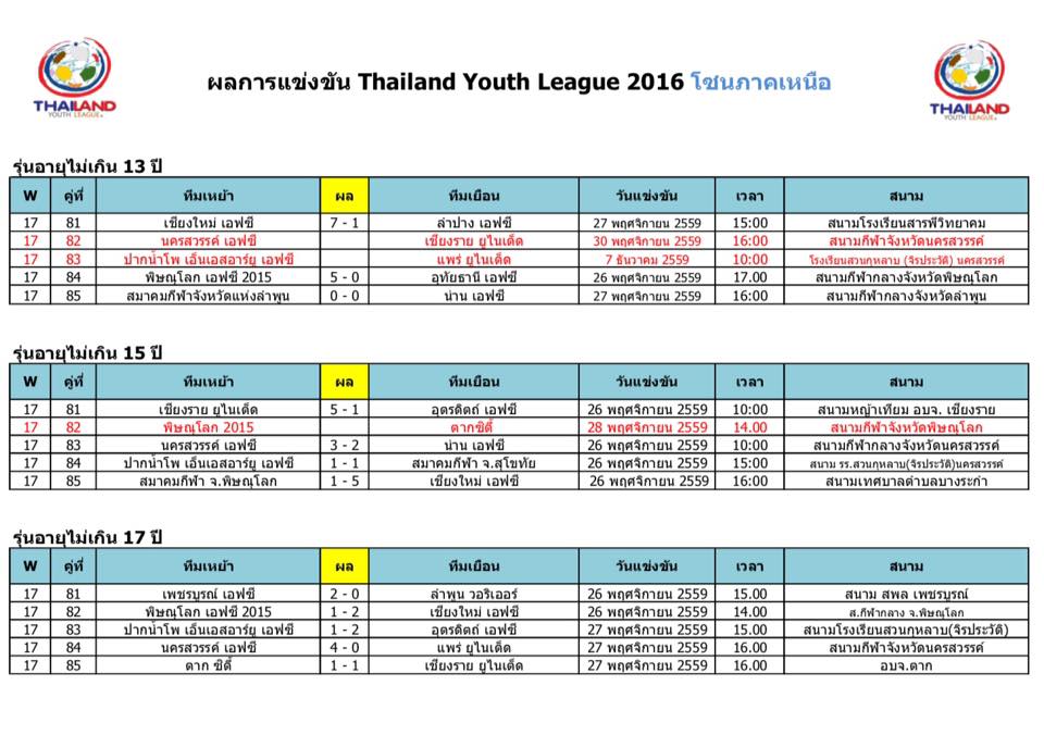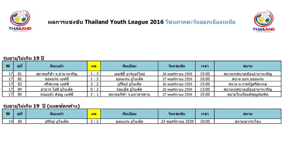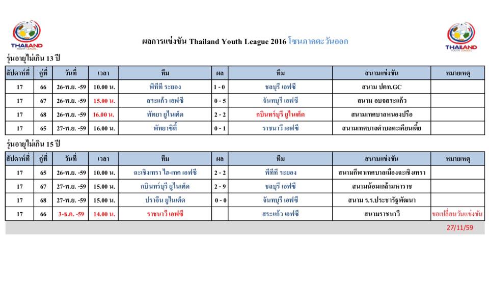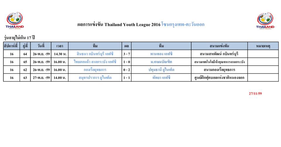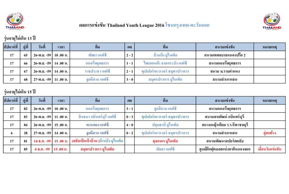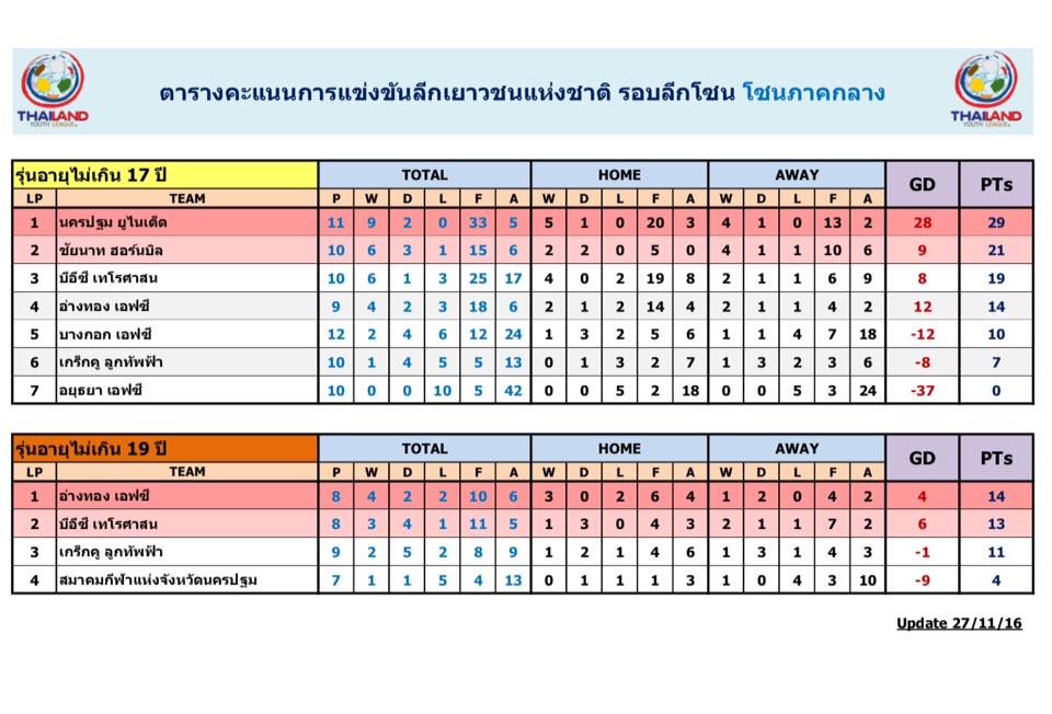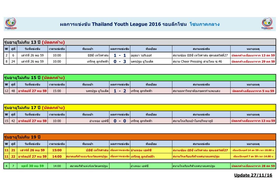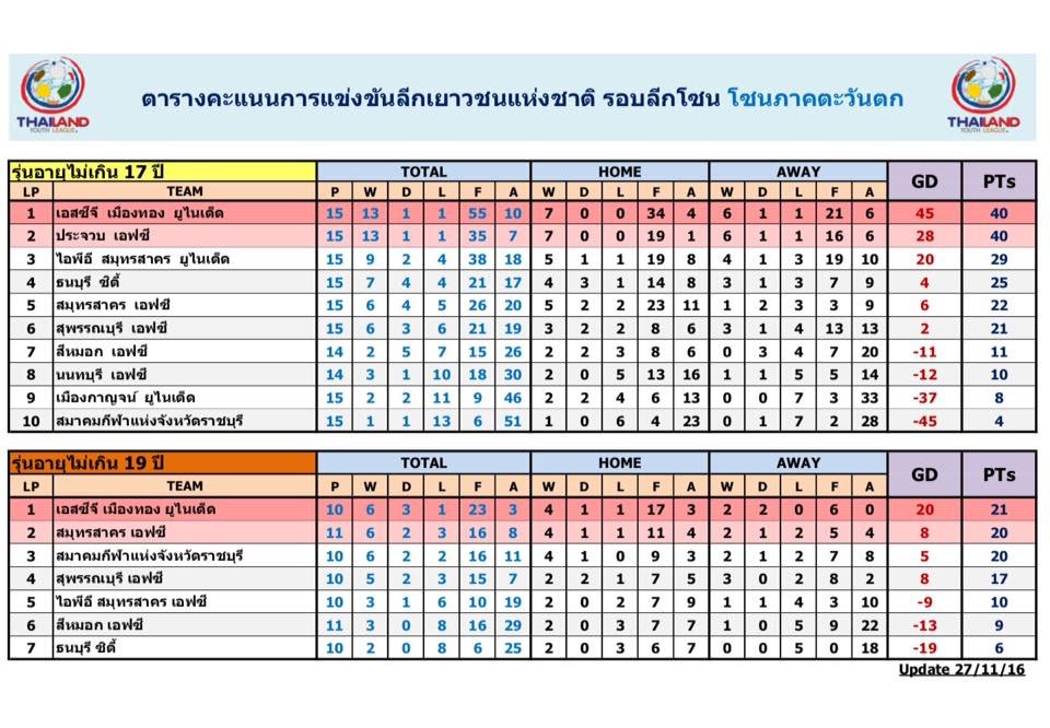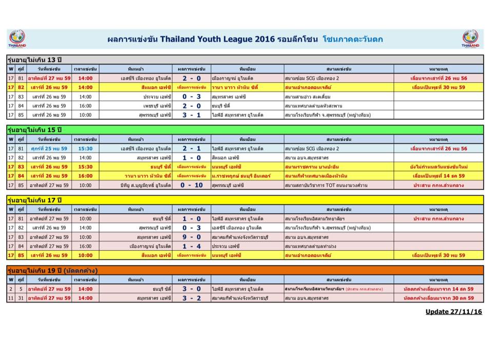 อัพเดตข่าวเกี่ยวกับฟุตบอลลีกเยาวชนแห่งชาติ 26 พฤศจิกายน 2559