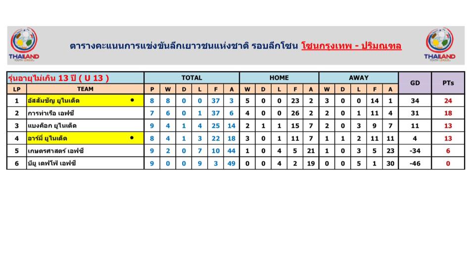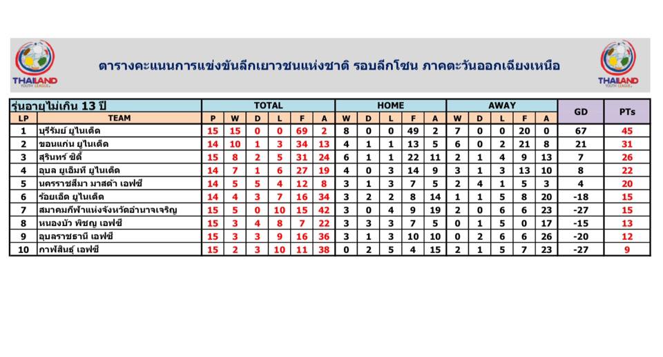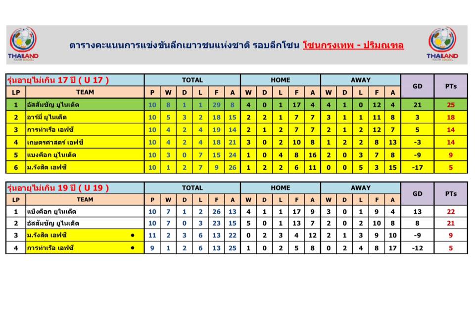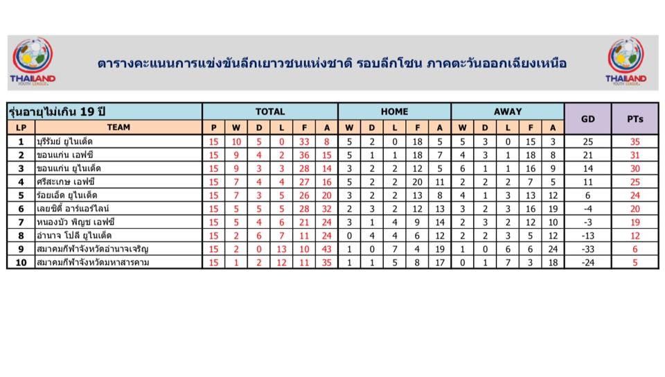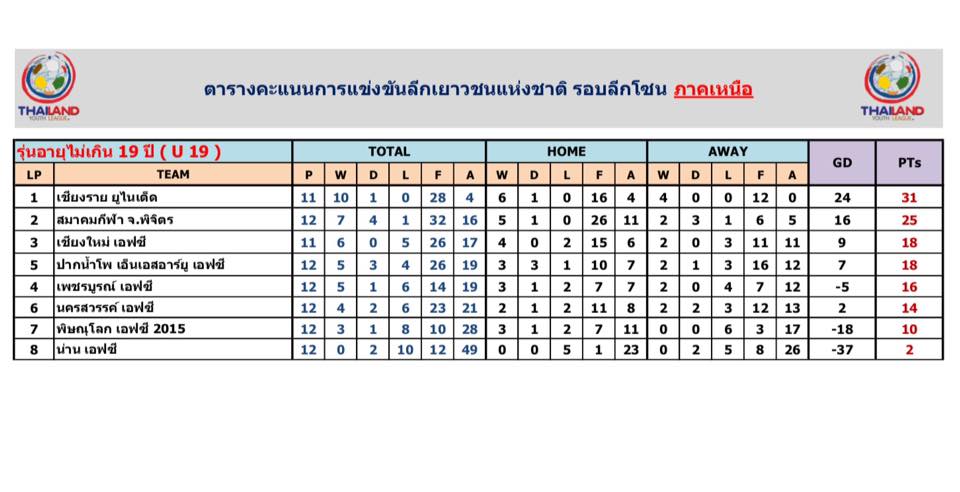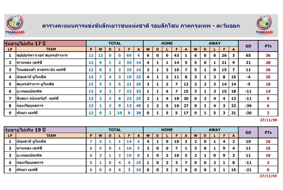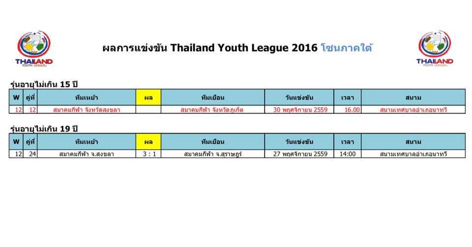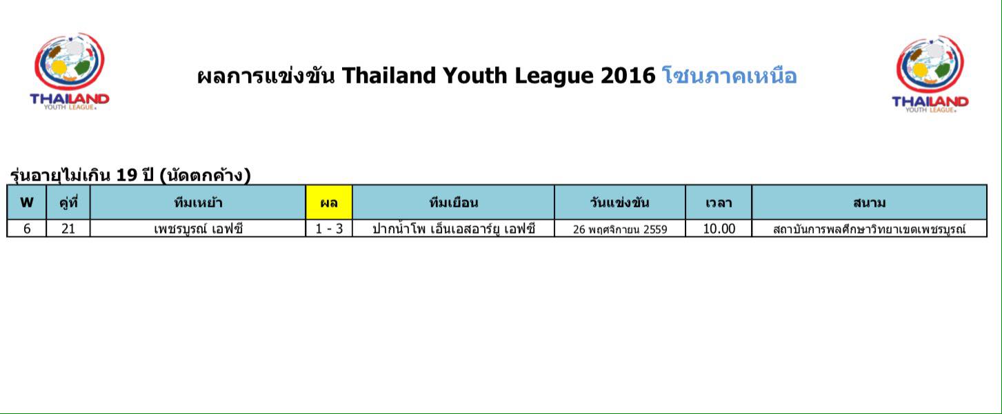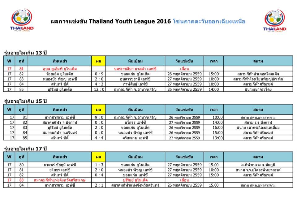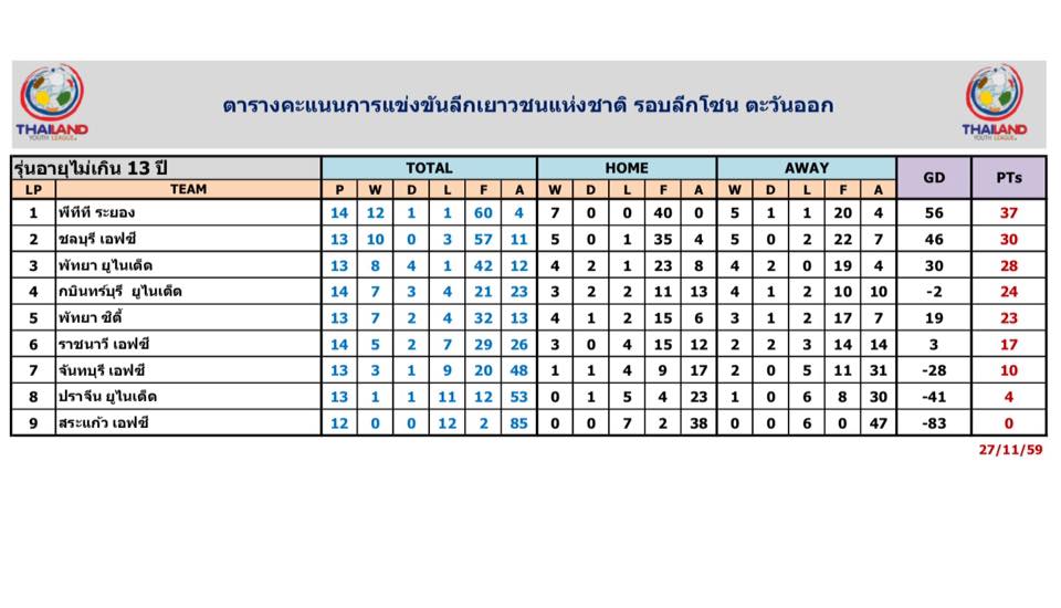 อัพเดตข่าวเกี่ยวกับฟุตบอลลีกเยาวชนแห่งชาติ 26 พฤศจิกายน 2559