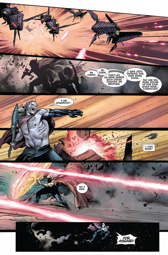 ธอร์ไม่รับค้อนจากเบต้าเรย์บิล พอกำลังจะถามว่าเอเลี่ยนพวกไหนขโมยค้อนอัลติเมทส์มโยลเนียร์ พวกมันก็โผล่มาจู่โจมทั้งคู่พอดี