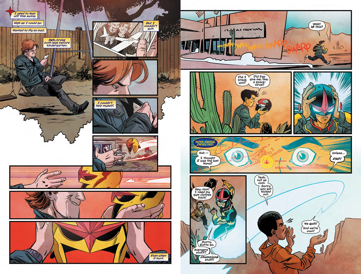 ริชาร์ดตื่นเต้นที่จะได้ออกบินด้วยหมวกโนว่าอีกครั้ง (นี่ความคิดเอ็งเด็กลงรึเปล่าเนี่ย) ทันใดนั้นแซมก็จับสัญญาณของเขาได้ นึกว่าเป็นพ่อเลยรีบเหาะไปหา