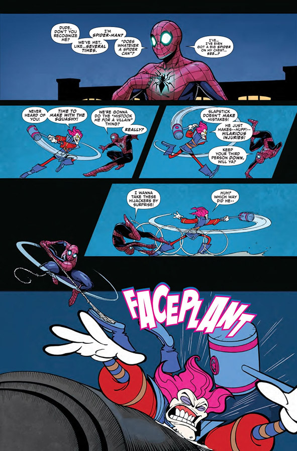 ดูเหมือนสแล็ปสติ๊กจะไม่รู้จักสไปดี้ทั้งที่สไปดี้รู้จักสแล็ปสติ๊ก แต่เขารู้จักสการ์เล็ตสไปเดอร์ซะงั้น (คนแบบนี้ก็มีด้วย?)