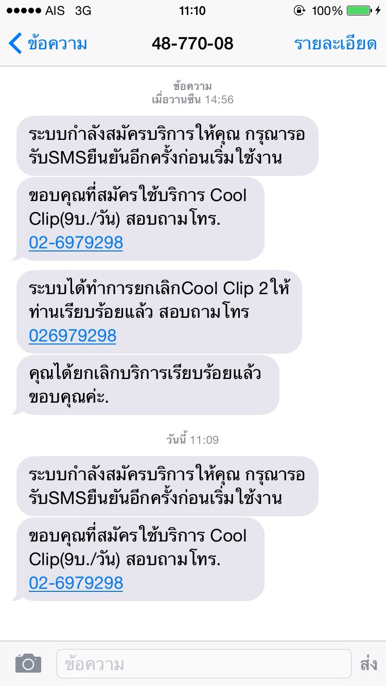 ยืนยันจริงๆค่ะว่าเวลาเข้าเว็บไซต์หรือเล่นข้อมูลอะไร ถ้าหากมีการให้กรอกเบอร์โทรศัพท์หรือแม้แต่การเด้งมาหน้า message อัตโนมัติ ไม่เคยทำการกรอกอะไรไปแม้แต่อย่างเดียว (เพราะถ้ากรอกจริง จะต้องมีข้อความขึ้นอยู่แล้วเนอะว่าทางเราได้ทำการส่งเพื่อการสมัคร และแน่นอนหากเข้าเพียงแค่ทางเว็บไซต์แล้วให้มีการกรอกอะไรเพิ่มเติมที่ดูเป็นการเสียเงิน ไม่กดสมัครแน่นอนค่ะ เพราะไม่อยากเสียเงินเพิ่มอยู่แล้ว)