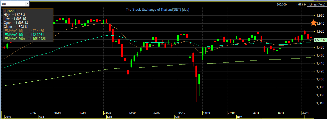 บล.แอพเพิล เวลธ์ ผ่ามุมมองแนวโน้ม SET เดือนธ.ค. แกว่งตัวในกรอบ 1,488-1,540 จุด แรงซื้อนักลงทุนต่างชาติเริ่มแผ่ว ลุ้นเม็ดเงิน LTF-RMF กว่า 2 หมื่นล้านบาท เข้ามาหนุน สั่งลุยหุ้น PTT - PTTEP - PTTGC - CK - STEC – ROBINS- HMPRO - CENTEL - ERW เข้าพอร์ต ได้รับอานิสงส์เต็มๆ ราคาน้ำมันพุ่ง-รัฐเดินหน้าลงทุนเมกะโปรเจ็กต์-มาตรการช็อปช่วยชาติ แนะจับตาผลการลงประชามติรับร่างปฏิรูปรัฐธรรมนูญของอิตาลีในวันที่ 4 ธ.ค.อย่างใกล้ชิด ชี้เป็นจุดเปลี่ยนที่สำคัญของกลุ่มยูโรโซน คาดประชุมเฟดรอบสุดท้ายของปีนี้ระหว่างวันที่ 13-14 ธ.ค. ขึ้นดอกเบี้ยชัวร์ ดันเงินดอลลาร์แข็งโป๊ก