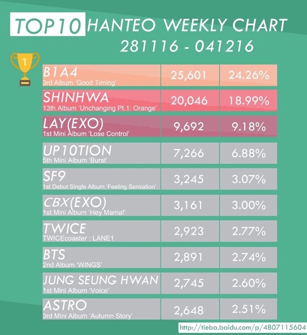 [K-POP] ยอดขายอัลบั้ม hanteo chart ประจำสัปดาห์ที่ 28.11.2016 - 04.12.2016