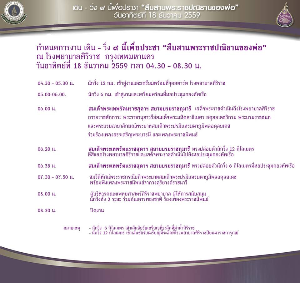 แจ้งเปลี่ยนเส้นทางวิ่ง "๙ นี้เพื่อประชา" และเฝ้าฯ รับเสด็จฯ สมเด็จพระเทพรัตนราชสุดาฯ สยามบรมราชกุมารี