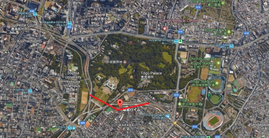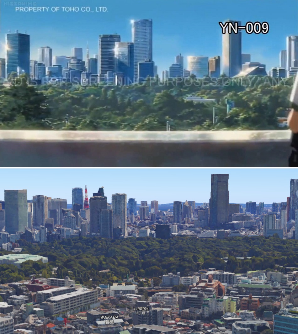 ซึ่งก็คือที่นี่ เป็นอาคารเดียวที่มุมมองจากห้องแล้วเป็นไปตามในอนิเมะ และเป็นตึกที่ใกล้เคียงกับที่ทาคิวิ่งออกมา