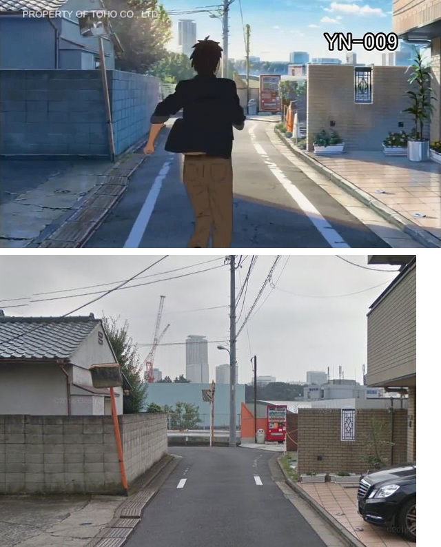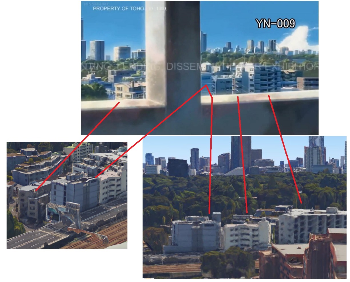 ข้อสรุปที่หนึ่ง ภาพเมืองที่มิสึฮะมองออกจากทางเดินหน้าห้อง ควรจะเป็นมุมจากบริเวณนี้