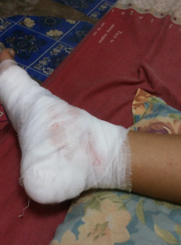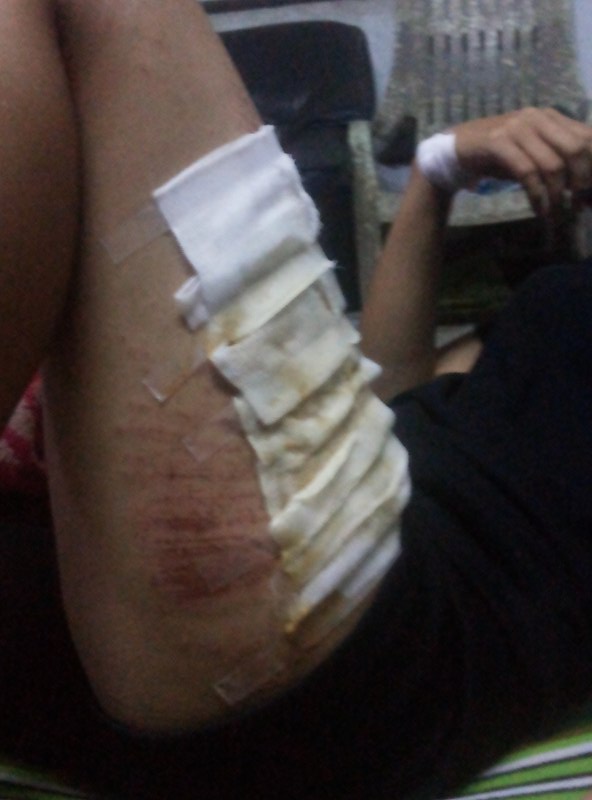 ##เจ๊มาจากไหนเนี่ย ไม่เห็นรถหรือไง เรายังไม่ได้ตอบเพรากำลังตกใจ และงง อยู่ ตั้งสติได้ เราเลยย้อนถามไปว่า รถเธอไม่มีไฟท้าย ใช่ไหม มันเลยเงียบได้ สักพัก เจ้าหน้าที่ก็มาช่วย เราได้รับบาดเจ็บที่ แขนขวา ขาทั้งสองข้าง หน้าผากปูด ดั้งจมูก โชคดีดั้งไม่หัก เท้าขวาเป็นเยอะต้องเย็บแผล ตอนทำแผลเจ็บมากๆพยาบาลก็ถูๆเช็ดๆ โอ๊ยๆๆๆ ตัวสั่น สั่นไม่หยุด สั่นเหมือนคนหนาว ไม่รุ้ว่าอาการนี้มาได้อย่างไร แต่ที่แน่ๆตอนนี้กลัวการขี่รถเลยค่ะ และก็มาคิดต่อว่าเหตุการณ์เกิดขึ้นเพราะอะไร เราประมาทใช่ไหม (ใช่) หรือเกิดจากคำทำนายความฝัน หรือดวงเราไม่ดี หรือถึงคราวเคราะห์ หรือ บลาๆๆๆ สภาพเราตามนี้เลยค่ะ