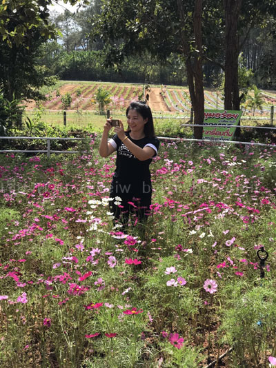 ส่วนใหญ่คนที่มาที่นี่จะถ่ายรูปกันที่ด้านหน้ามากกว่า เพราะดอกไม้สวยค่ะ