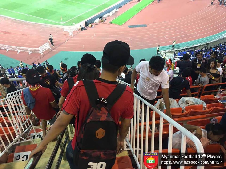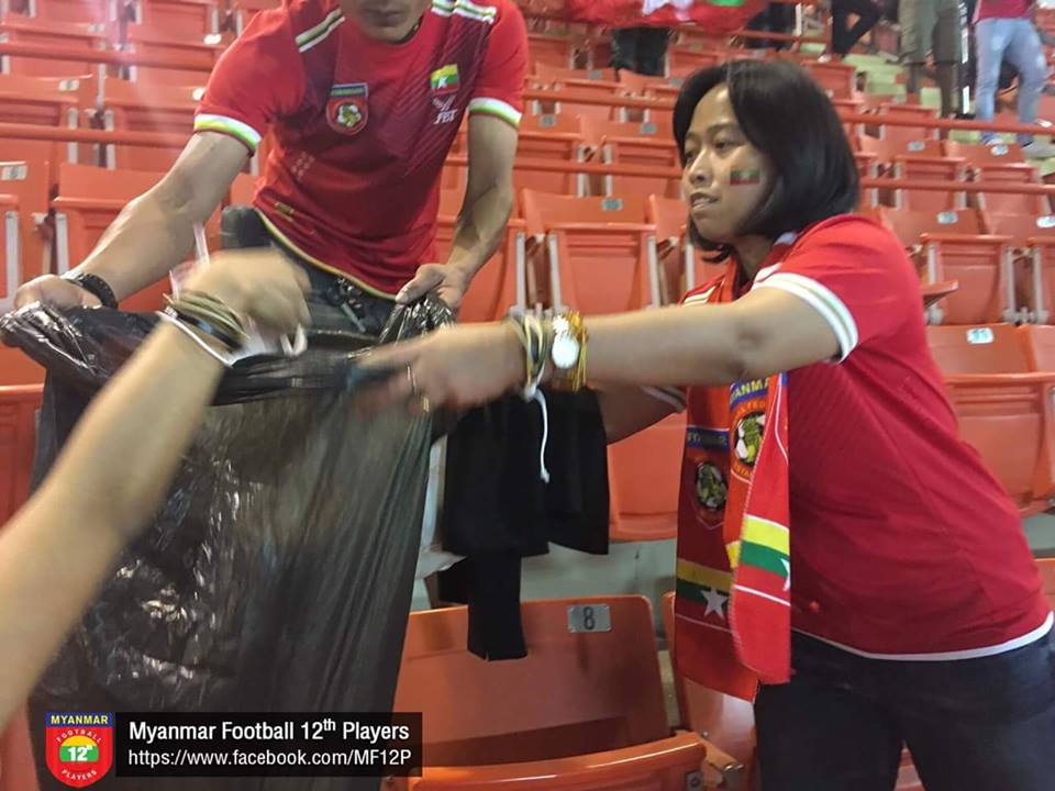 กองเชียร์พม่าน่ารัก ช่วยเก็บขยะหลังจบแมทช์