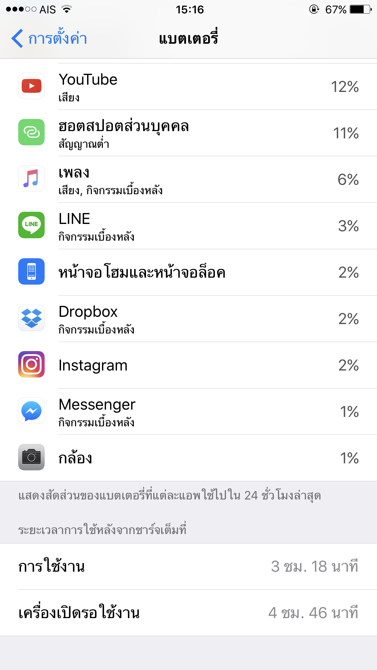 ผมชาร์ตเต็มร้อยครับ สแตนบาย 4 ชม. ใช้งาน 3 ชม. แบตเหลือ 66%