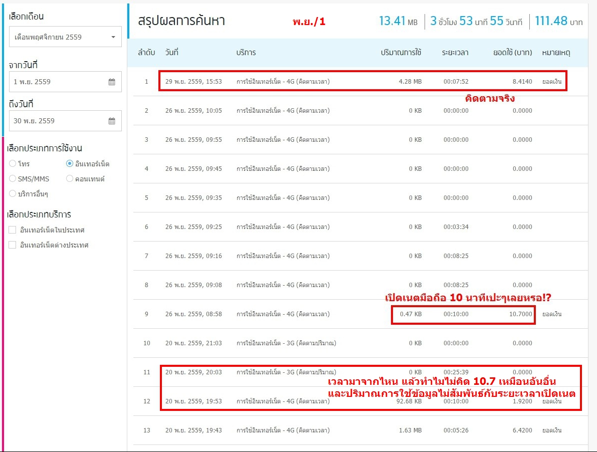 แต่เมื่อได้เปิดใช้งานไม่ถึง 1 นาที แต่กลับคิดค่าเนตมือถือ 10 นาที