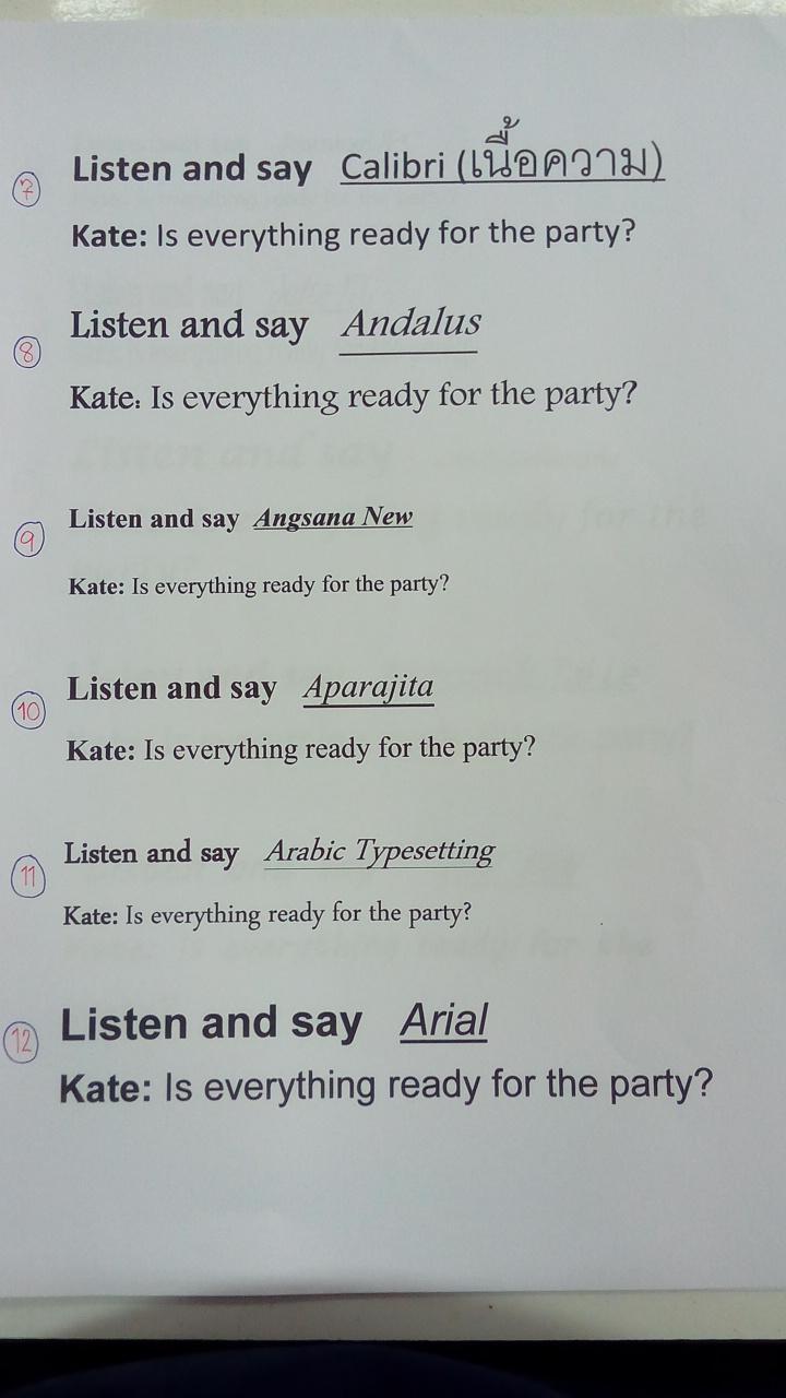 สำหรับตัวเลือกในแต่ละฟอนต์จะเป็นหมายเลขกำกับข้างหน้าของแต่ละฟอนต์ใน 3 รูปนี้ค่ะ