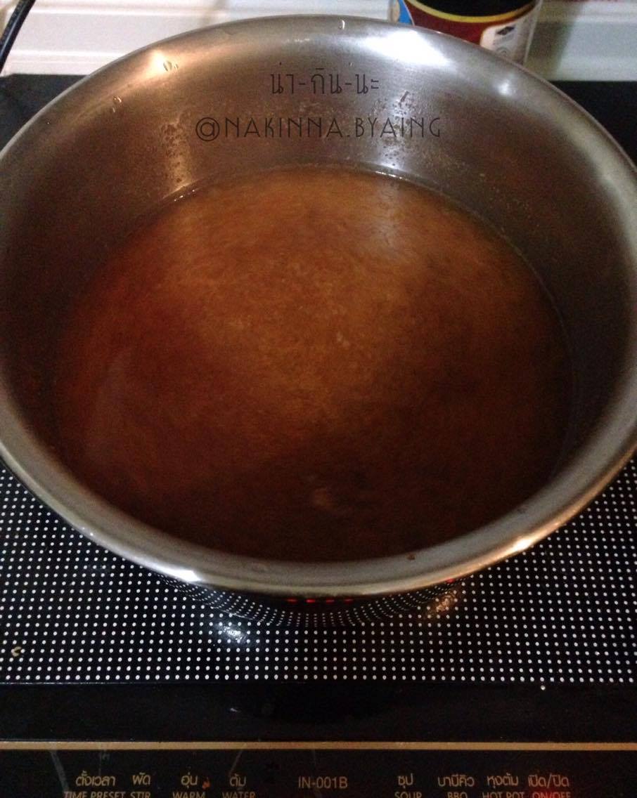 5. ปรุงรสด้วยน้ำปลา และน้ำมะขามเปียก เล็กน้อย ชิมรสให้ออกเค็ม เปรี้ยวนำกำลังดี และเดี๋ยวจะได้ความหวานของมันเทศตามมา