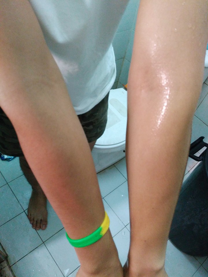 ข้างที่ไม่มีริสแบนด์คือข้างที่ถูสบู่ เห็นผลแตกต่างได้ชัดเจนเลยครับผิวใสขึ้น