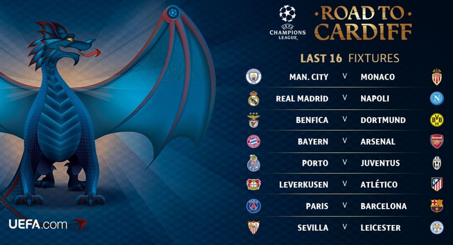 ผลจับสลากยูซีแอลรอบ 16 ทีม
